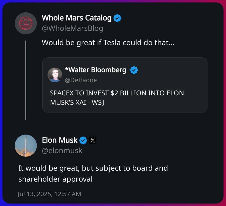 这一回应引发了市场的高度关注,因为就在前一天,《华尔街日报》报道称,马斯克旗下的另一家公司——太空探索技术公司SpaceX已经承诺向xAI投资20亿美元,这笔资金将成为xAI 50亿美元股权融资的重要组成部分。xAI作为马斯克在人工智能领域的重要布局,正直接与OpenAI等竞争对手展开较量。